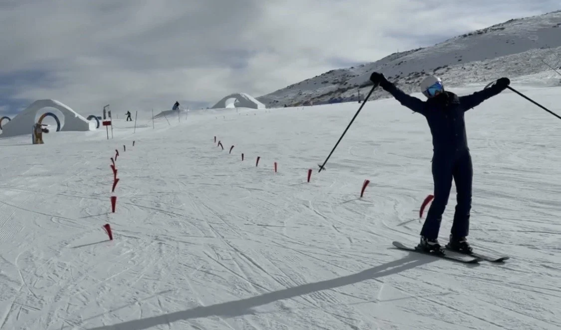 At Dollar Mountain at Sun Valley Ski Resort, they set up a kids’ terrain park off the Quarter Dollar lift. This terrain park was extremely entertaining. You ski through tunnels, up, down, and around, finishing with a plastic bear fixed at the end of the course, waiting for you to give it a high five. Of course, if you have a ski pole in one hand, you end up punching the bear’s hand with your fist.